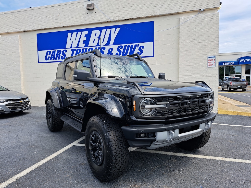 Clean CARFAX. CARFAX One-Owner. 2024 Ford Bronco Raptor AT-HOME DELIVERY AVAILABLE, ONLINE PRE-APPROVAL, SIGHT UNSEEN APPRAISALS. This Bronco Raptor is nicely equipped with Equipment Group 374A High/Lux Package, 10 Speakers, 4-Wheel Disc Brakes, 4.7 Axle Ratio, ABS brakes, Air Conditioning, Alloy wheels, AM/FM radio: SiriusXM with 360L, Auto High-beam Headlights, Auto-dimming Rear-View mirror, Automatic temperature control, Brake assist, Code Orange Accent Seat Belts, Compass, Connected Navigation, Convertible HardTop, Convertible roof lining, Delay-off headlights, Driver door bin, Driver vanity mirror, Dual front impact airbags, Dual front side impact airbags, Electronic Stability Control, Emergency communication system: 911 Assist, Exterior Parking Camera Rear, Front anti-roll bar, Front Bucket Seats, Front Center Armrest, Front dual zone A/C, Front fog lights, Front License Plate Bracket, Front reading lights, Front Row Top Panels & Door Storage Bags, Front wheel independent suspension, Fully automatic headlights, Garage door transmitter, Glass rear window, Heated door mirrors, Heated front seats, Heated steering wheel, Illuminated entry, Integrated roll-over protection, Leather Shift Knob, Low tire pressure warning, Marine Grade Vinyl Bucket Seats, Navigation system: Connected Navigation, Occupant sensing airbag, Off-Road Assistance Kit (DIO), Outside temperature display, Overhead airbag, Overhead console, Panic alarm, Passenger door bin, Passenger vanity mirror, Power door mirrors, Power steering, Power windows, Radio data system, Radio: B&O Sound System by Bang & Olufsen, Rear anti-roll bar, Rear seat center armrest, Rear window defroster, Rear window wiper, Remote keyless entry, Second Row Panel Roof Bag Storage (DIO), Security system, SiriusXM Radio w/360L, Speed control, Split folding rear seat, Steering wheel mounted audio controls, SYNC 4, Tachometer, Telescoping steering wheel, Tilt steering wheel, Traction control, Trip computer, Turn signal indicator mirrors, Variably intermittent wipers, Voltmeter, Wheel Lock Kit (DIO), Wheels: 17 Black High Gloss-Painted Aluminum, and Wheels: 17 Dark Carbonized Gray Alloy Painted.